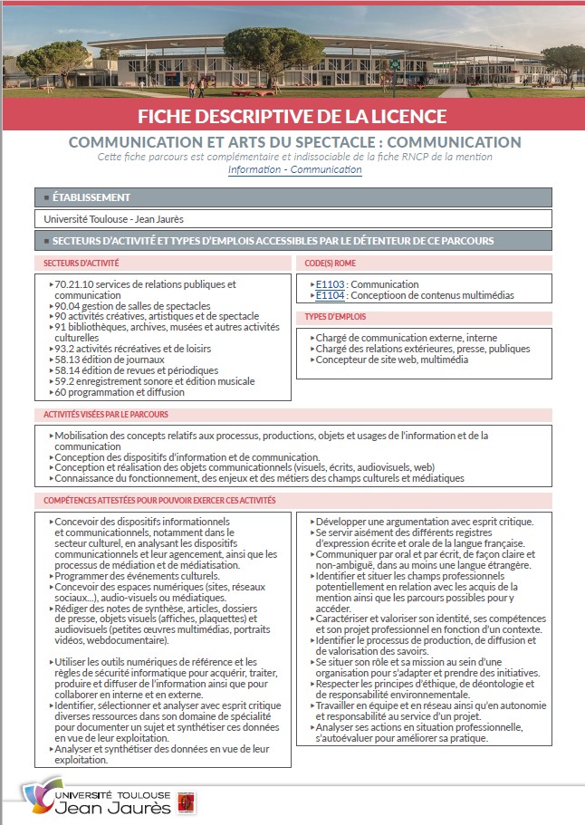 Fiche descriptive de la Licence Communication et arts du spectacle : communication