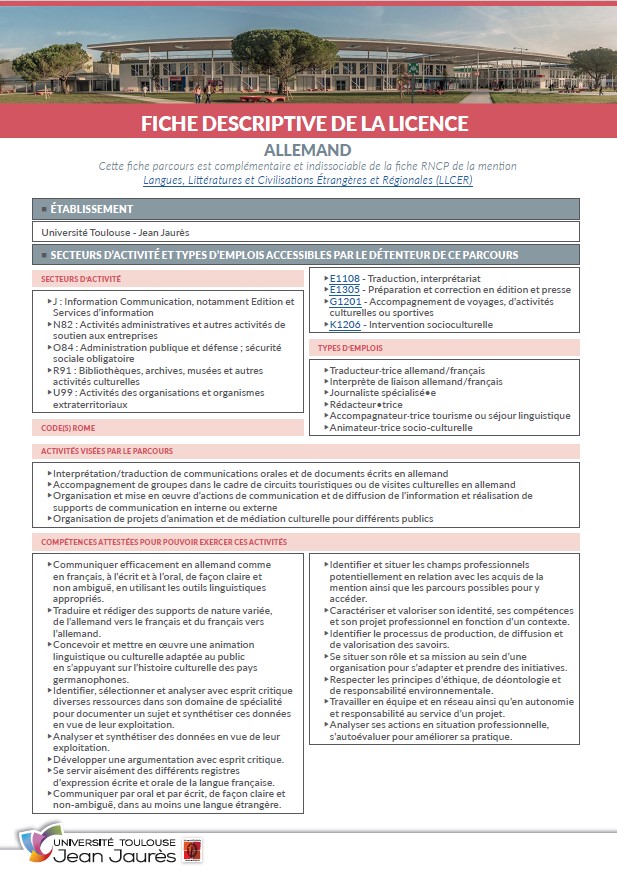 a pour objectif de former des spécialistes de la langue allemande et des cultures germanophones (Allemagne, Autriche, Suisse).
